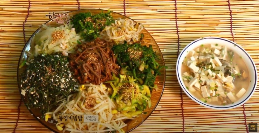 Đây là món Bibimbap từ Tongyeong (통영), Gyeongsangnam- do (경산남도). Người dân địa phương thường ăn nó vào các dịp lễ và tiệc . Nó thường kết hợp cơm với các loại thảo mộc, ngao nướng với đậu phụ và nhiều loại rau thơm khác nhau tùy theo mùa mà được thêm vào.